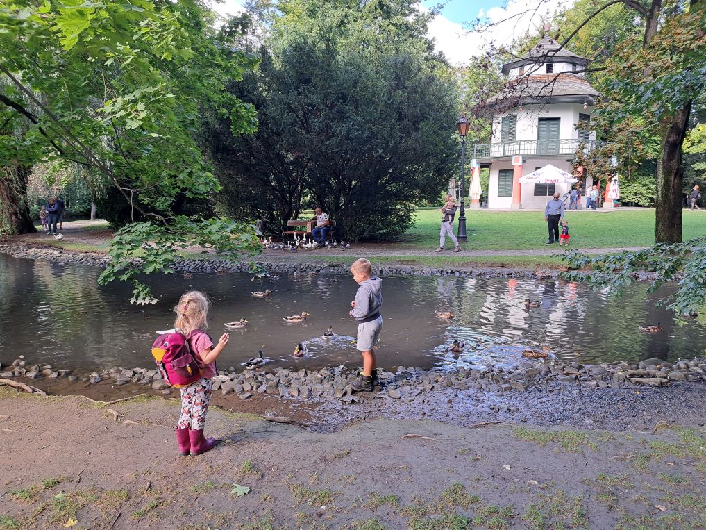 W parku możemy podziwiać ule, karmić kaczki i łabędzie w stawie, obserwować ryby, szukać wiewiórek, a jesienią, zbierać żołędzie i kasztany. Możemy również zjeść lody czy wypić kawę w kawiarni znajdującej się w Domku Chińskim.